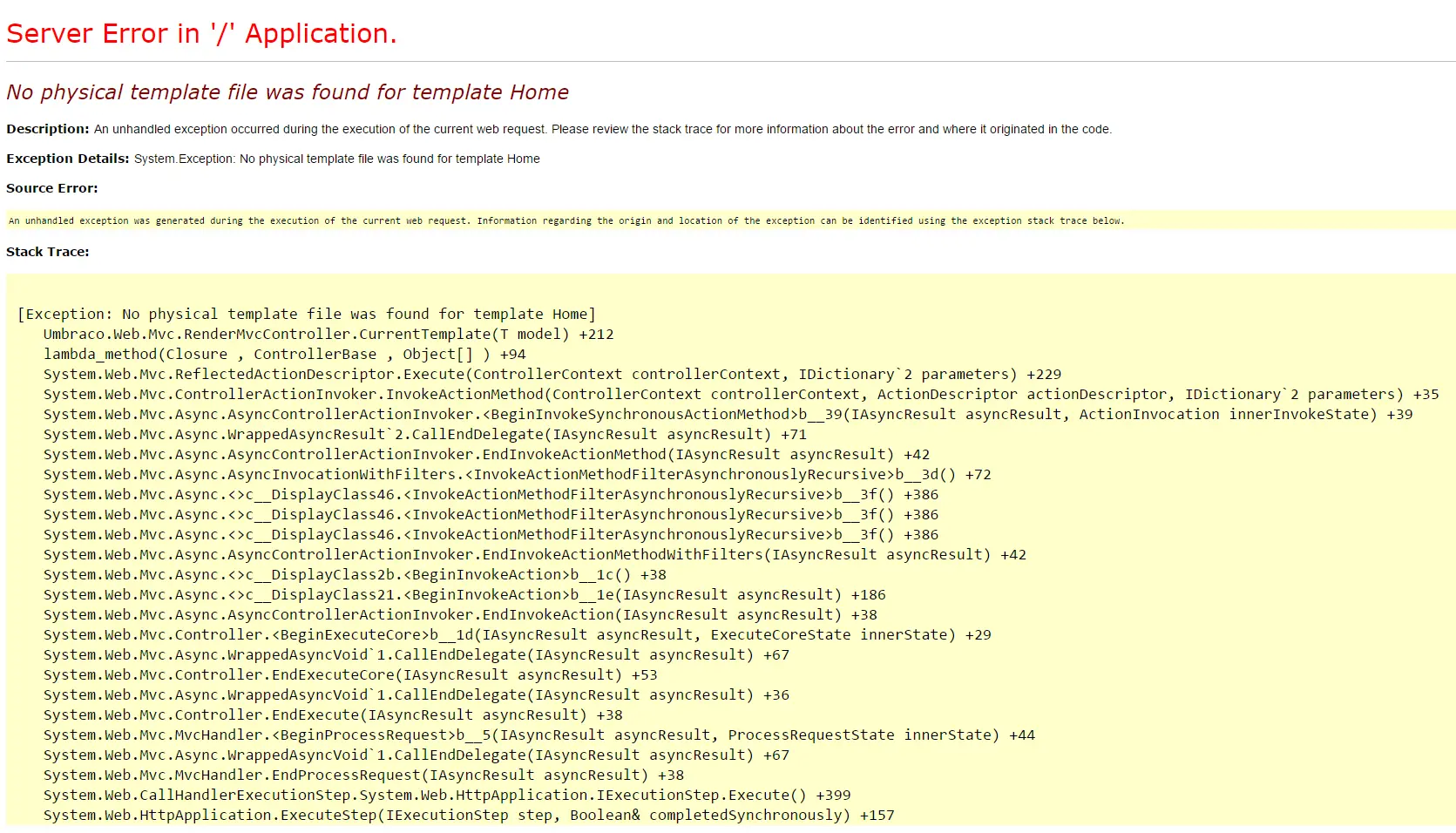 No physical template file was found for template X