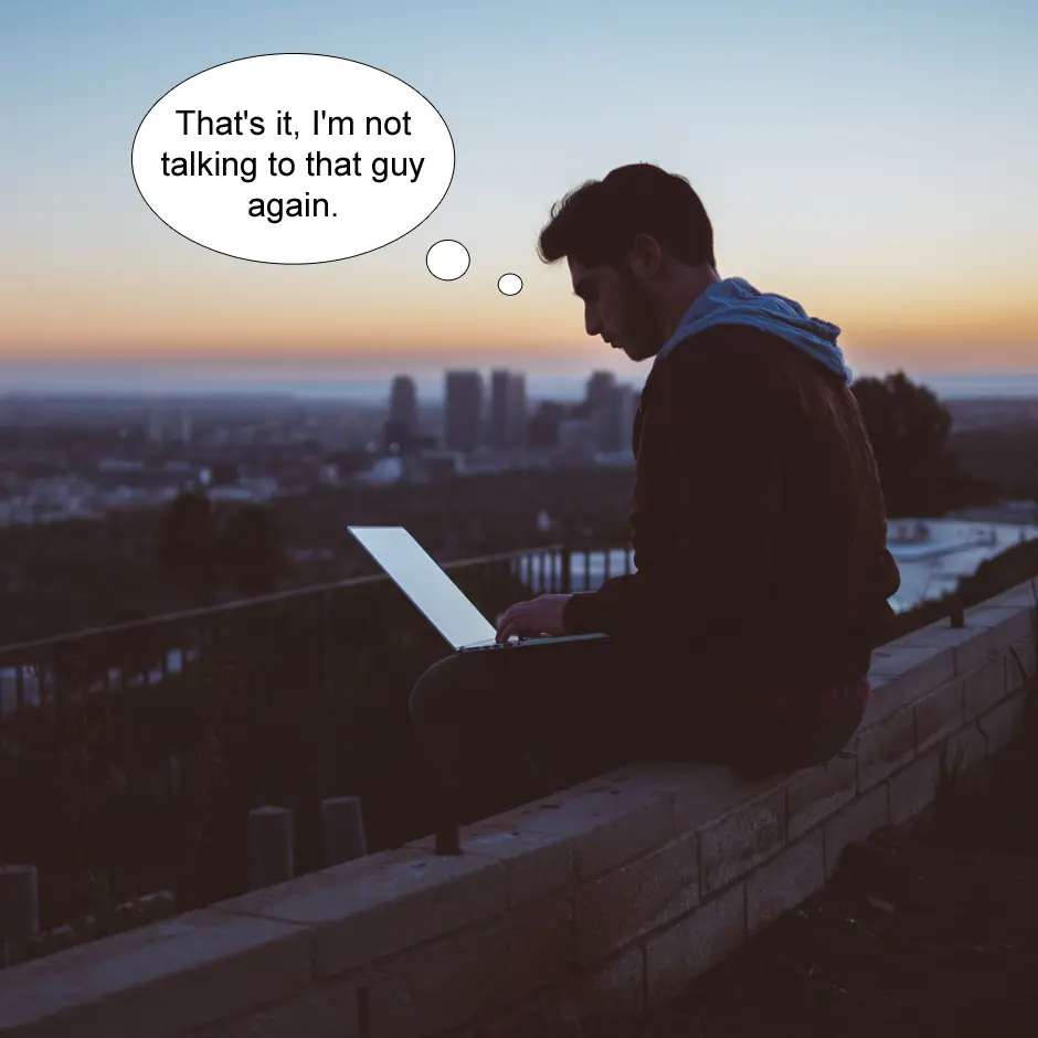 After anger comes withdrawal. Bob will try his best to avoid talking to or even being around Dave.