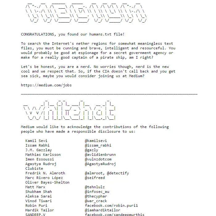 A humans.txt file is a simple text file which gives credit to the people behind building the site.